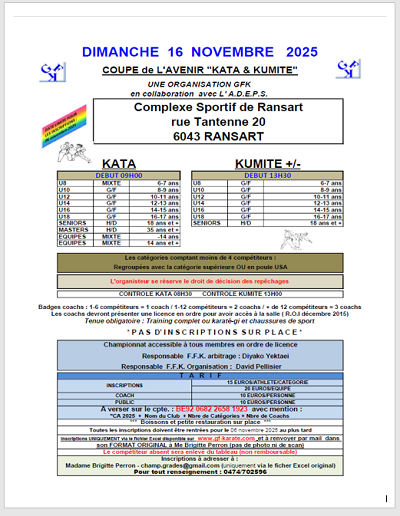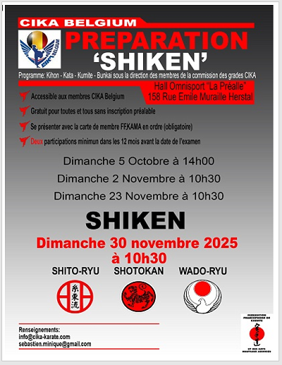 Bonjour à tous, Dans ton futur, tu souhaites être un senseï formé certifié ADEPS et pouvoir donner cours à des enfants et à des adultes. Cette formation est faite pour toi car elle te mettra en situation avec d'autres karatékas leur apprendre toutes les ficelles techniques pour évoluer et leur donner les bons exercices adaptés à chacun Envoies ta demande à formation@ffkama.be et tu auras l'occasion de nous rejoindre. Belle journée Secrétariat FFKAMA
