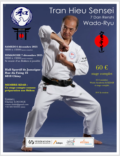 Bonjour à tous, Dans ton futur, tu souhaites être un senseï formé certifié ADEPS et pouvoir donner cours à des enfants et à des adultes. Cette formation est faite pour toi car elle te mettra en situation avec d'autres karatékas leur apprendre toutes les ficelles techniques pour évoluer et leur donner les bons exercices adaptés à chacun Envoies ta demande à formation@ffkama.be et tu auras l'occasion de nous rejoindre. Belle journée Secrétariat FFKAMA